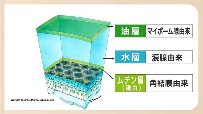 ・一番内側で目に涙を均一に広げる「ムチン層」