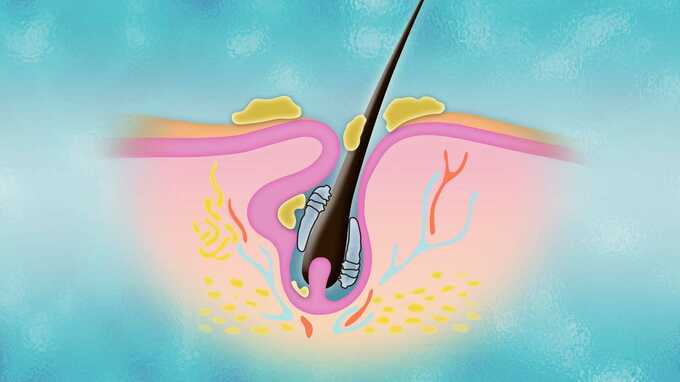 酸化した脂のかたまりや皮脂の汚れをエサにしながら繁殖するまつ毛ダニ。そのフンや死骸が脂の分泌腺をふさいでしまいます。
