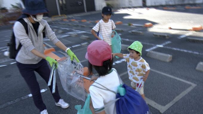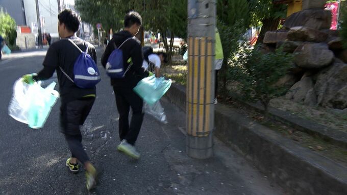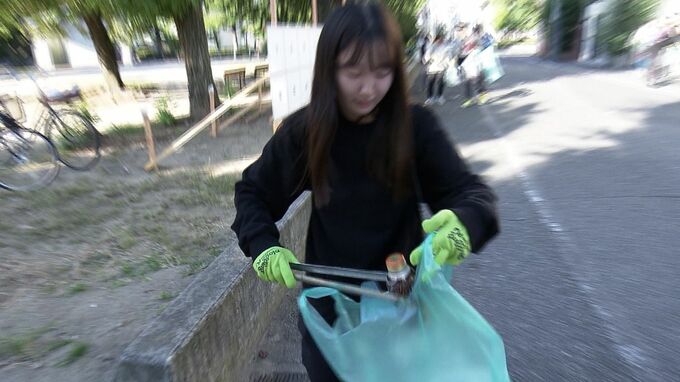 ランナーや家族連れらは、西川緑道公園の周辺でタバコの吸殻や空き缶などを拾っていきました。