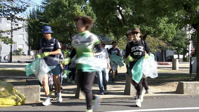 スポーツの秋。ジョギングを楽しみながら街もきれいにしようというクリーン作戦が、岡山市内で行われました。