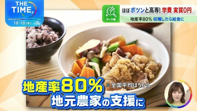 学生たちが「おいしい!」と絶賛する給食は、地元産の野菜や肉などをふんだんに使った定食やカレーやパスタなど「地産地食」の日替わりメニュー。地産率80%(※全国平均56%)で、地元農家の支援にもなっているんです。