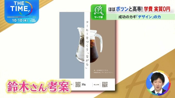 1年生が作った水出しアイスコーヒーのポスターは、店の人も「完成度に驚いた」という作品で、実際に店に貼ると「売り上げが去年の3倍になった」のだとか。