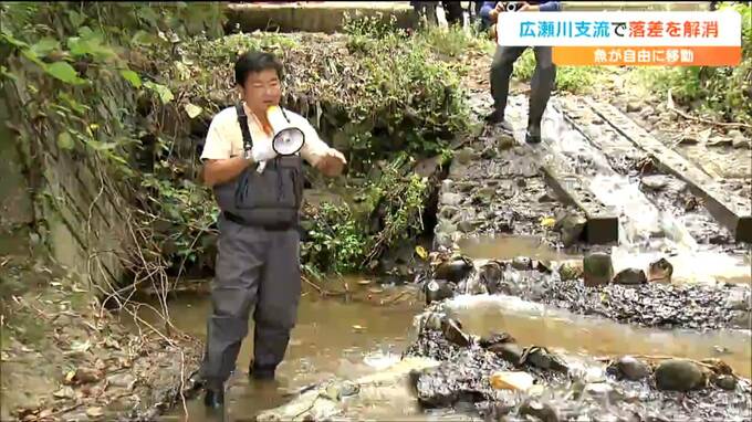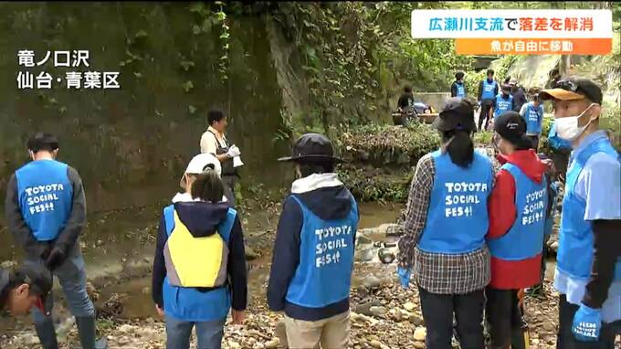 広瀬川を魚たちが自由に移動できるようにしようという取り組みです。仙台市を流れる広瀬川の支流で14日、川の落差を解消するプロジェクトが行われました。