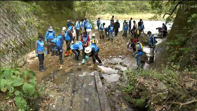 仙台市の青葉山から広瀬川へと流れる支流の竜ノ口沢には、親子連れなどおよそ50人が集まりました。
