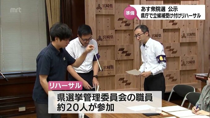 15日、公示される衆議院選挙です。公示を前に県庁では、立候補受け付けのリハーサルが行われました。リハーサルは15日の立候補の受け付け作業をスムーズに進めるため行われたもので、県選挙管理委員会の職員ら…