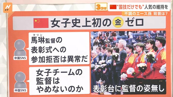 中国のSNSには「馬琳監督の表彰式への参加拒否は異常だ」「女子チームの監督はやめないのか」という声もありました。
