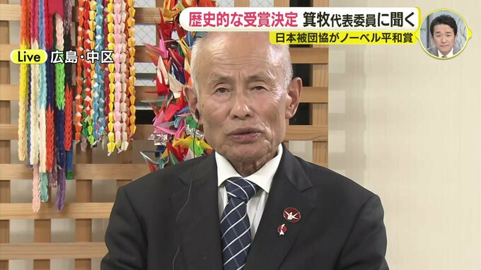 ノーベル平和賞受賞決定から4日目。日本被団協(日本原水爆被害者団体協議会)の 箕牧智之 代表委員がRCCのニュースに生出演し、受賞への思いやこれからの取り組みなどについて思いを述べました。