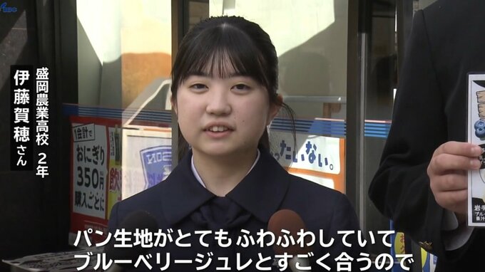 岩手県立盛岡農業高校の生徒が大手コンビニエンスストアチェーンと共同開発した県産食材を使ったパンが15日発売されました。