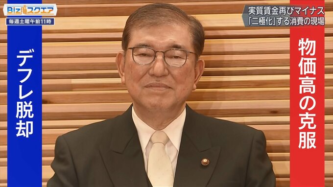 二極化する消費の現場。石破茂総理は所信表明で、物価高に苦しむ低所得者への支援など経済対策を早急に策定するとした。一方で物価の上昇が続いているのにも関わらずデフレから完全に脱却していないとして、「デフレ脱却」を最優先に実現するともしている。果たして、石破総理は「デフレ脱却」と「物価高の克服」を実行できるのか。
