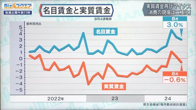 実質賃金再びマイナス 「二極化」する消費の現場