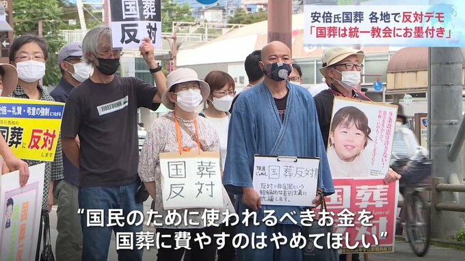安倍元総理の国葬をめぐり、きょう、各地で反対するデモが行われました。一方、首都圏の知事は出席に前向きな考えを示しています。新宿駅前では、先ほど午後5時から、女性たちの団体が主催した国葬に反対する集会…