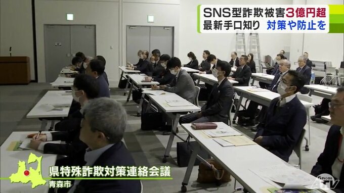 会議で、青森県警の担当者は2024年に入ってから急増しているSNSを使った詐欺被害の手口を紹介しました。
