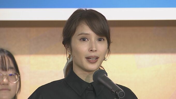 俳優の広瀬アリスさんが、千葉県船橋市の非公認ご当地キャラ・ふなっしーさんとともにWFPチャリティー エッセイコンテスト2024「大切さを考えよう 私たちのごはん」表彰式に特別審査員として登場しました。