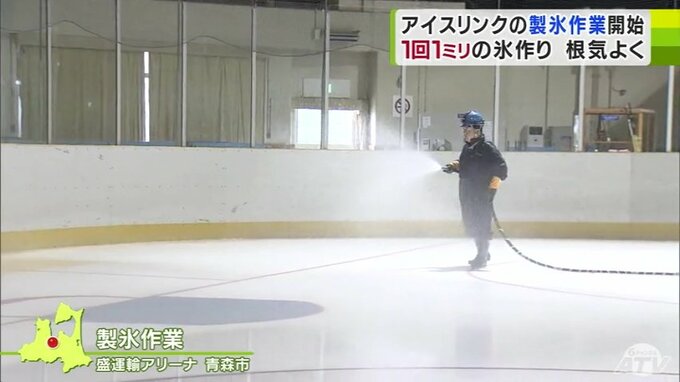 青森県内はこの所、朝晩の寒暖差が大きくなってきました。こうした中、青森市のアイススケート場でリンクの製氷作業が始まっています。