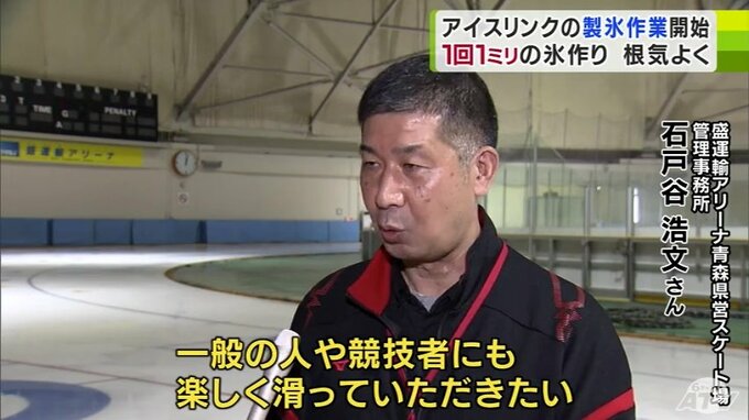 「(製氷作業は)例年通り順調に進んでいます。一般の人も競技者もみんなに楽しく滑っていただきたい」