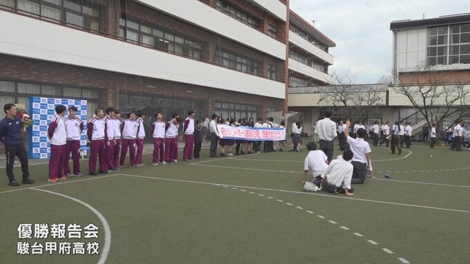 高校三冠を達成した駿台甲府ハンドボール部が10月15日に高校に戻り、報告会が開かれました。