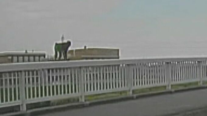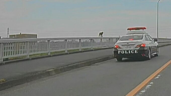 橋の欄干にいるのがサルです。この後サルは、中川区の荒子観音、小栗橋でも目撃情報が寄せられました。