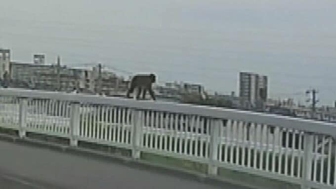 14日に名古屋の中心部に出没したサル。今度は中川区に現れました。これは、15日午後1時過ぎ、中川区の庄内川にかかる大当郎橋を西に向かう車のドライブレコーダーの映像です。橋の欄干にいるのがサルです。この後…