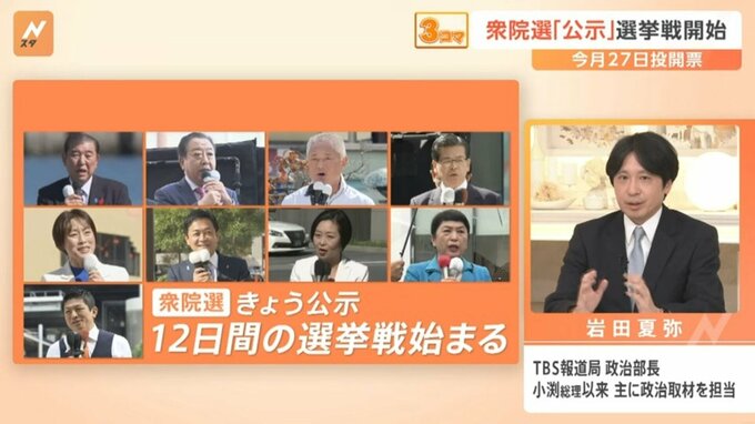 新内閣発足から戦後最短での解散となり、衆院選が15日に公示され、12日間の短期決戦が始まります。