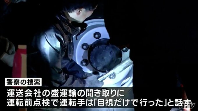 この事故を巡っては、警察のこれまでの捜索でタイヤを固定していた複数のナットが高速道路上で見つかったほか、運送会社の盛運輸の聞き取りに、運転手の男性は運転前点検について「目視だけで行った」と話していました。
