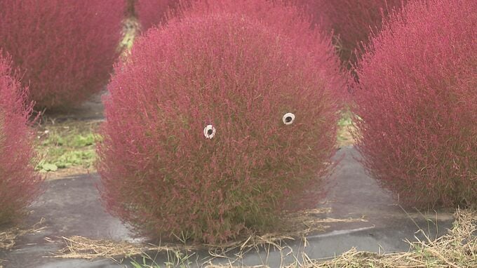 すっかり秋の気配が漂う福島県猪苗代町の猪苗代ハーブ園では、秋の草花がいま見ごろを迎えています。こんもりとした姿がかわいらしいコキアは、赤く鮮やかに色付きました。なかには目があしらわれ、まるでキャラク…