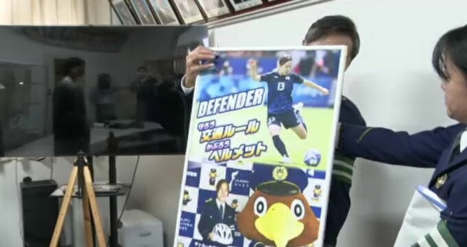 北川選手を起用したポスターは、石川県警が高校生の自転車用ヘルメットの着用率アップを目指して作成し、大聖寺高校の生徒が考えた「守ろう交通ルールかぶろうヘルメット」のキャッチフレーズが採用されました。
