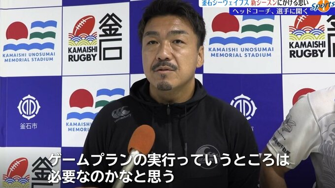試合後取材に応じた、須田康夫ヘッドコーチは新シーズンの目標に掲げた「STEEL WAVE」にたがわぬ、STEEL=“鋼”のように強い決意や勇気を相手に圧力をかけ続ける試合展開だったと評価しました。