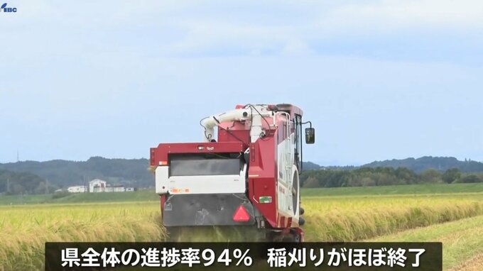 県全体の進捗率は94パーセントで、刈り取りがほぼ終了しています。