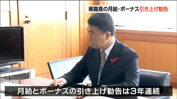 宮城県人事委員会は17日、県職員の月給とボーナスを引き上げるよう村井知事に勧告しました。月給とボーナスの引き上げ勧告は3年連続です。県人事委員会は17日、村井知事に今年度の県職員の給与について勧告しまし…