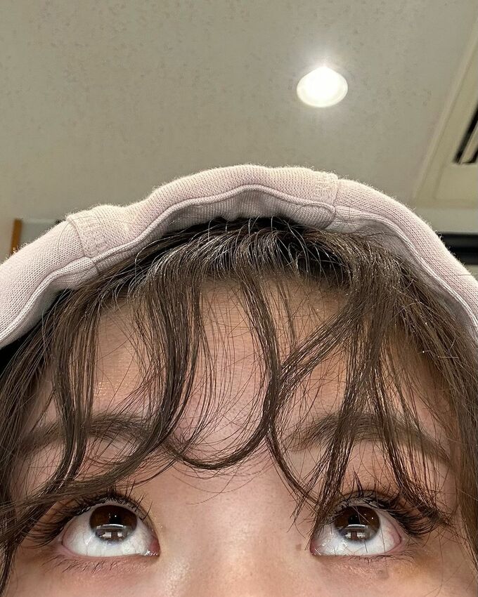続けて「メイクさんにメイクしてもらうと上がる やってみたかった前髪」と、メイクアップ写真をアップしました。