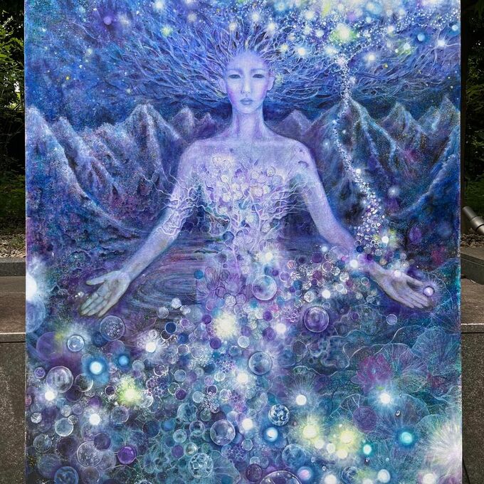 投稿された絵画作品について、工藤静香さんは9月5日のインスタグラムで「光風霽月 コウフウセイゲツ」「悲しみで瞳は霞んでも、いつかは雨上がりの様に澄み切った心になるだろう。と、描き上げた絵です。100号」「命の光 命の光が輝きながら、空へと。」と、説明。