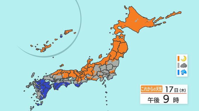 北海道では穏やかに晴れる分、地表の熱が奪われる「放射冷却」が強まるため、日の入り後は一気に気温が下がります。旭川など内陸では今夜は5度くらいまで下がり、札幌でも18日朝にかけて1桁の気温となる見込みです。