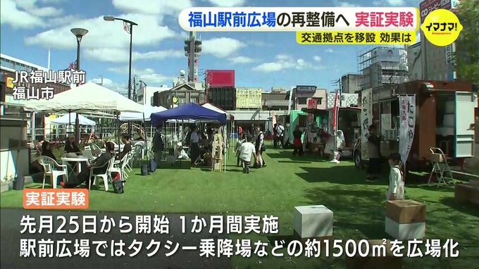 広島県福山市は将来的な福山駅前広場の再整備へ向けて、交通拠点を移設させるなどの影響を探る実証実験に取り組んでいます。実証実験は9月25日から始まっていて、1か月間行ないます。JR福山駅南口の駅前広場のうち…