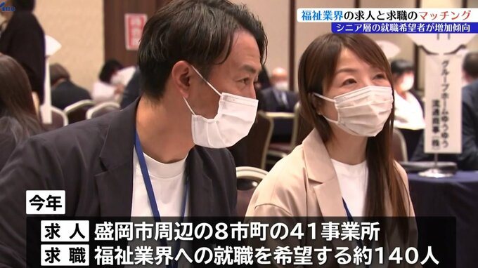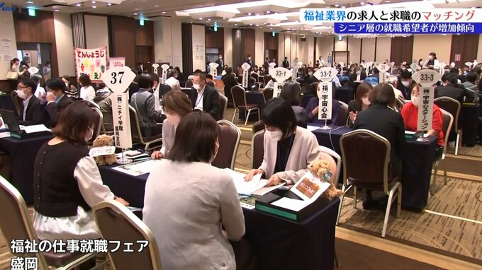 一方で、収入や社会とのつながりを求めて福祉業界への就職を希望するシニア層が増加傾向にあり、岩手労働局は求人と求職のマッチングを推進したい考えです。