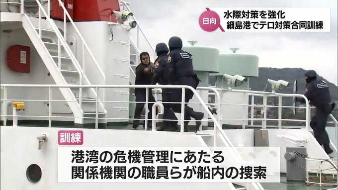 水際対策を強化です。宮崎県日向市の細島港で、関係機関が参加したテロ対策合同訓練が行われました。日向市の細島港で行われた合同訓練には、税関や港湾事務所、それに、警察など8つの関係機関からあわせておよそ4…