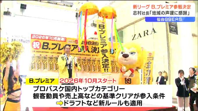 プロバスケ仙台89ERSです。2年後に新たに始まるBリーグのトップカテゴリー、「B.プレミア」について、17日、89ERSの参入が正式に決まりました。