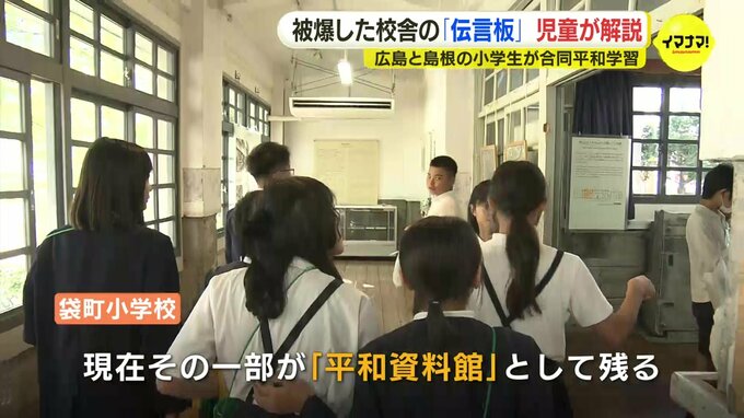 広島市にある小学校が島根県の小学校と合同で平和学習をしました。原爆に耐え、救護所にもなった校舎などを子どもたちが案内しました。袋町小学校 6年生「津田小学校の2組さん、わたしについてきてください」袋町…