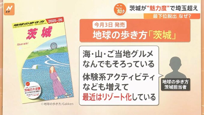10月3日には地球の歩き方「茨城」が発売されています。地球の歩き方の茨城担当者によると、「海・山・ご当地グルメ、なんでもそろっている。体験系アクティビティなども増えて最近はリゾート化している」ということです。