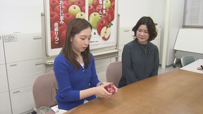6つの面の色や絵柄を揃えるルービックキューブ。一味違うのが絵柄に県の特産品「リンゴ」が使われていることです。