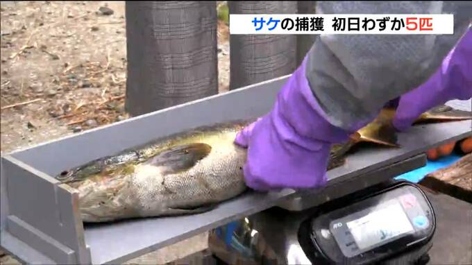 宮城県気仙沼市の大川で18日朝、今シーズン初となるサケの捕獲が行われましたが、水揚げされたのは、5匹にとどまりました。気仙沼市南気仙沼地区を流れる大川ではけさ、漁業生産組合の組合員が捕獲機に入ったサケ…
