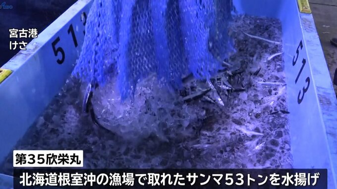 宮古港で18日朝、今シーズン初となるサンマ53トンが水揚げされました。