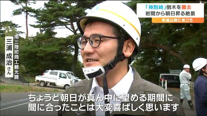 神割崎では4年前にも大雨で倒木があり撤去されています。今回の費用およそ110万円は、南三陸町と石巻市で出し合ったということです。神割崎では来週以降、岩の間から朝日が昇る時期を迎えます。