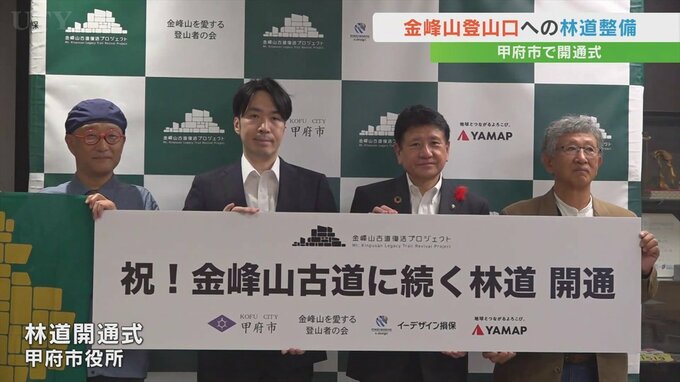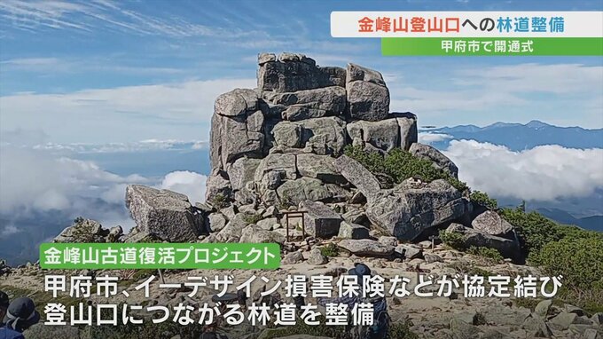 金峰山の登山口につながる林道は去年、甲府市とイーデザイン損保、登山者でつくる団体が協定を結びクラウドファンディングなどを行って、整備したものです。
