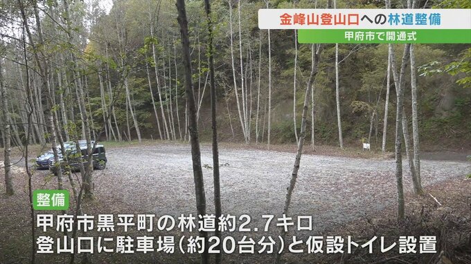 整備されたのは約2.7kmで登山口にはおよそ20台が停められる駐車場と仮設トイレも設置されています。