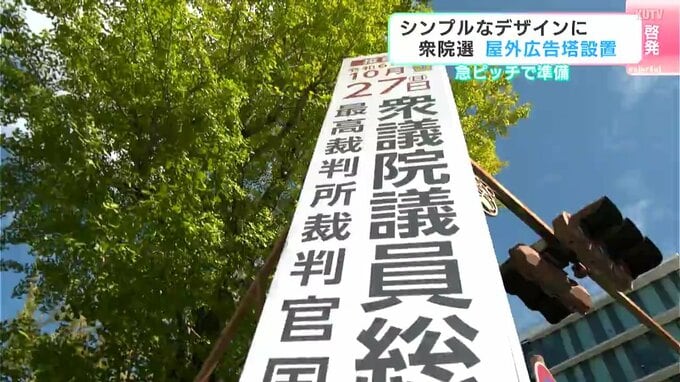 10月27日に投開票が行われる衆議院議員選挙を前に、高知市の高知県庁前交差点に啓発用の屋外広告塔が設置されました。設置作業は18日朝9時半から始まりました。高知県選挙管理委員会によりますと、衆院選の屋外広…