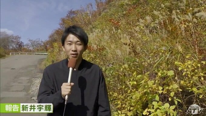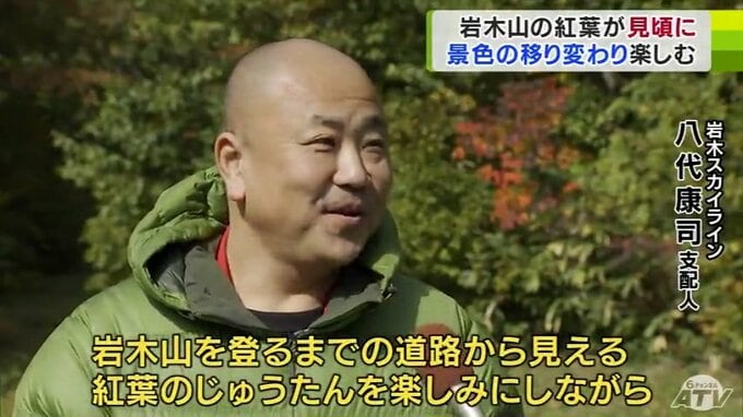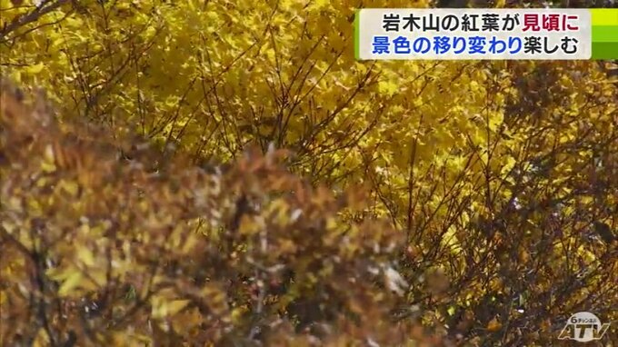 「岩木山の中腹あたりです。このように『赤』や『黄色』に色づいていて、見頃となっています」