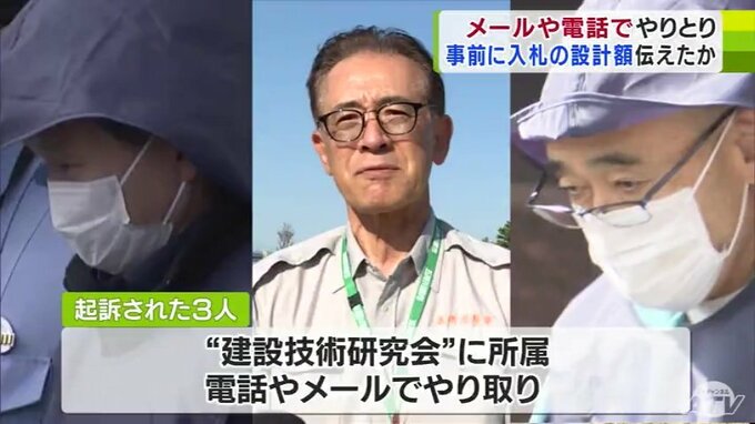 これまでの調べによりますと3人は、いずれも建設技術研究会に所属し、今回の事件では「電話」や「メール」でやり取りをしていたということです。また、入札の前には研究会の会合を開き、事前に入札参加業者を決めました。