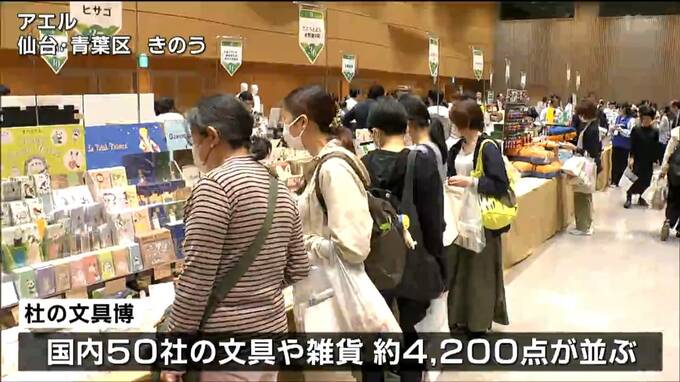 仙台駅前のアエルで開かれている「杜の文具博」には、国内50社の文具や雑貨およそ4200点が並んでいます。