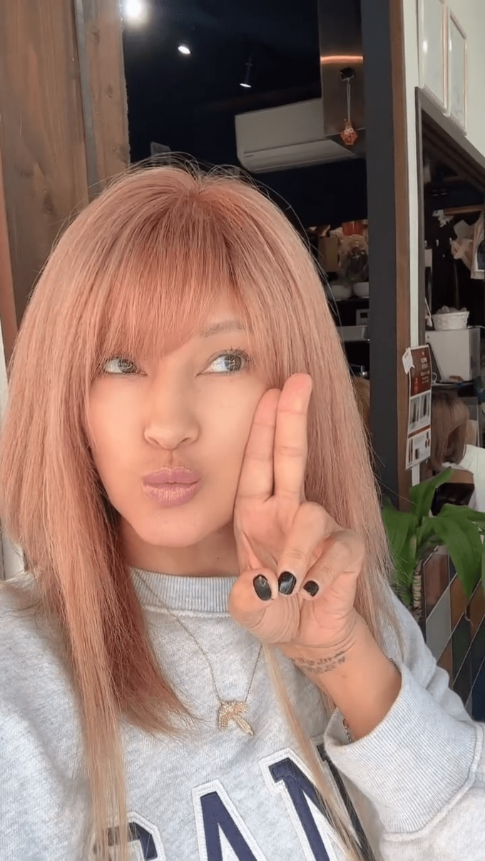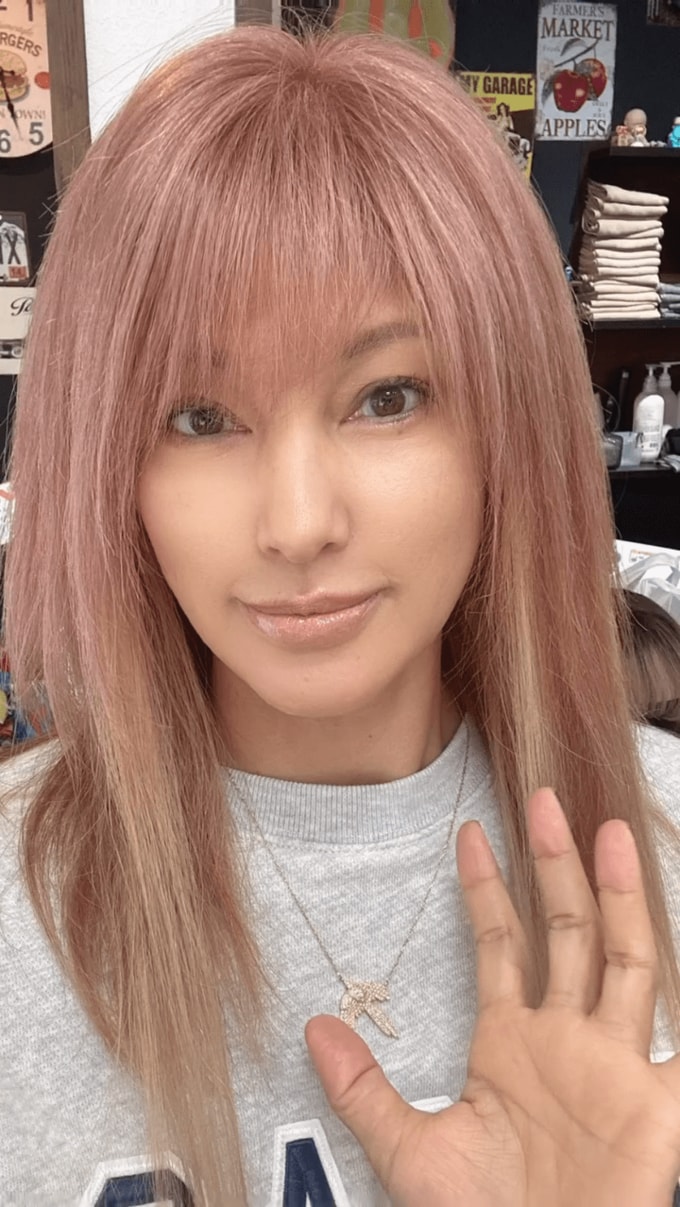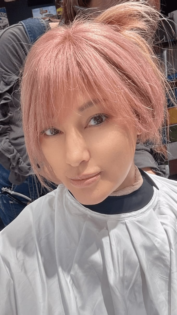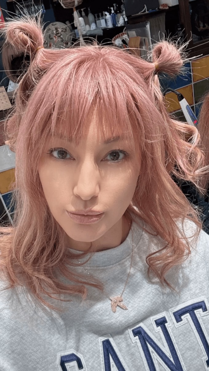 梅宮アンナさんは「今日は、ウィッグのメンテナンスでした♥」と、美容院でウィッグをメンテナンスする動画や写真や投稿。