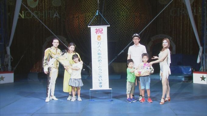 宮崎市で開催されている木下大サーカスの来場者が5万人を突破し、セレモニーがありました。5万人目の来場者となったのは、宮崎市の日高橙也くん(5)です。セレモニーでは、橙也くんとその家族に花束とオリジナル…
